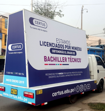 Llegamos a Lima y principales ciudades del Perú, planificando rutas publicitarias en avenidas de alto tránsito, zonas comerciales y puntos estratégicos para maximizar la visibilidad de tu marca.