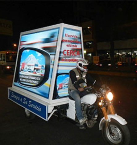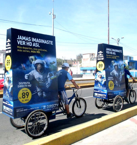 Formato publicitario ágil que permite recorrer distritos específicos y zonas donde otros medios no llegan, aumentando la frecuencia de impacto.